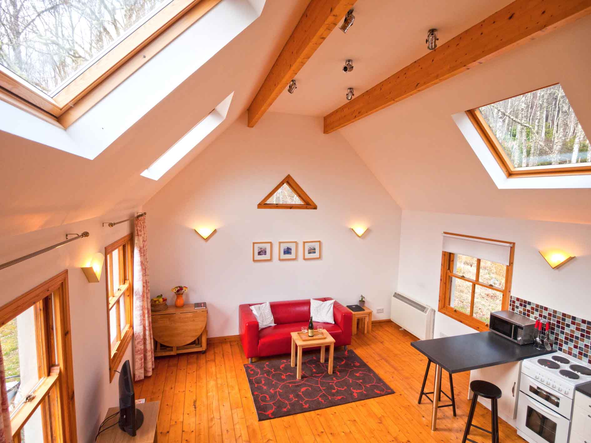 Fern CottageFern Cottage is a bright, modern cottage for the accommodation of 2 people. Inside the double height ceiling , open plan layout and mezzanine floor create a spacious feel while skylights allow sunlight to flood in and create a wonderful, bright place to stay for your holiday. Outside it has its own private patio area where you can sit and watch a beautiful sunset or even have a barbecue (weather permitting).