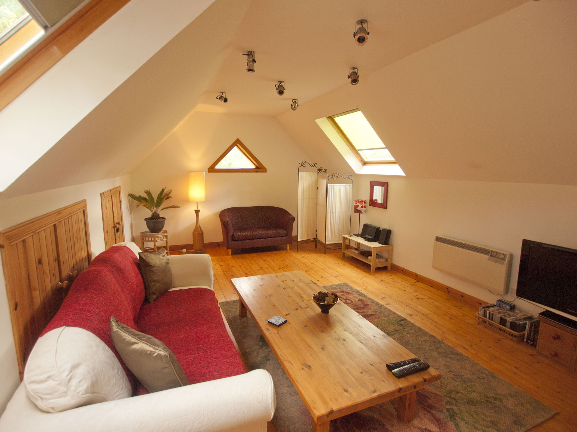 At night you can use the array of small theatre lights controlled by dimmer switches to give you just the right atmosphere for a romantic evening in front of the log burning stove.